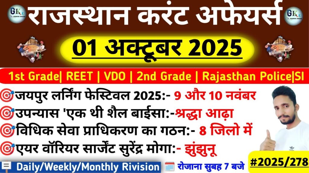 1 October Rajasthan Current Affairs 2025|RPSC, RSSB, SI