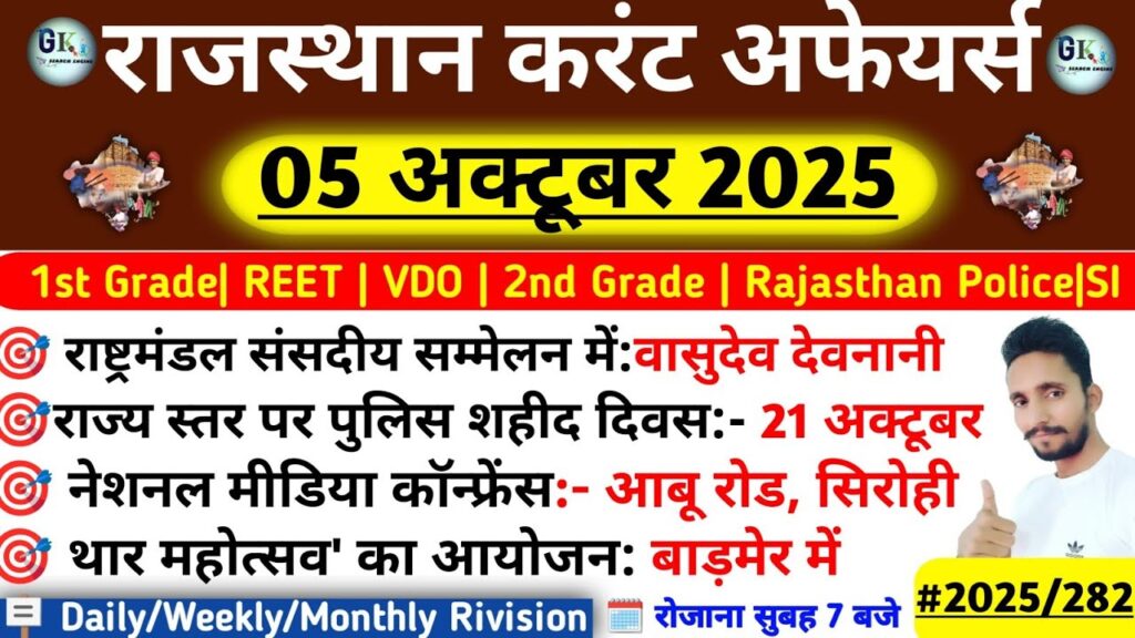 5 October Rajasthan Current Affairs 2025| RPSC, RSSB, SI