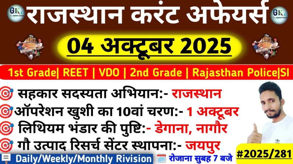 4 October Rajasthan Current Affairs 2025|RPSC, RSSB, SI