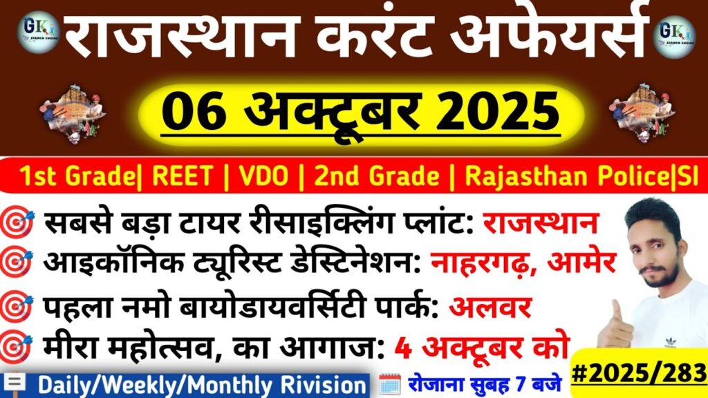 6 October Rajasthan Current Affairs 2025|RPSC, RSSB, SI