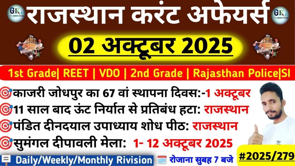 2 October Rajasthan Current Affairs 2025|RPSC, RSSB, SI