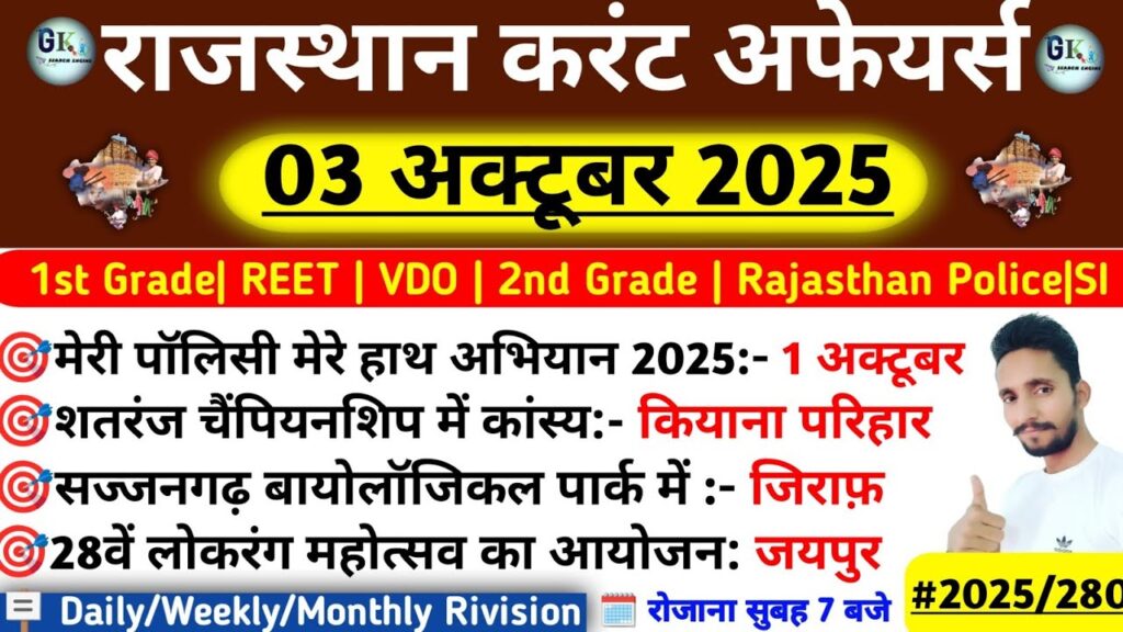 3 October Rajasthan Current Affairs 2025| RPSC, RSSB, SI