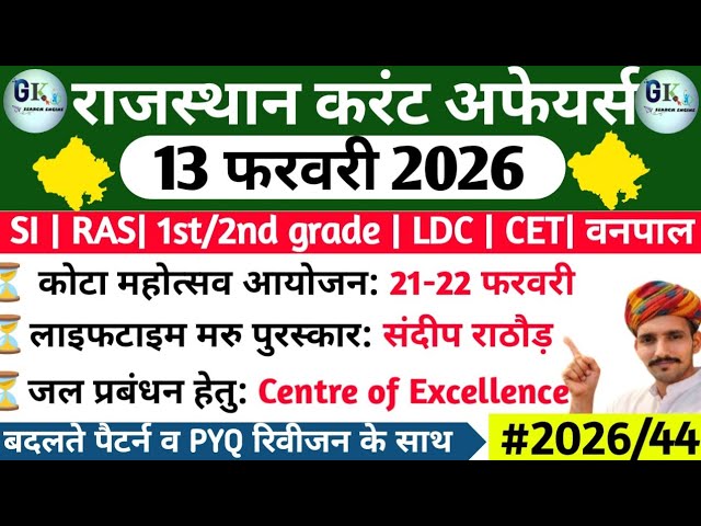 13 February Rajasthan Current Affairs 2026| RPSC, RSSB