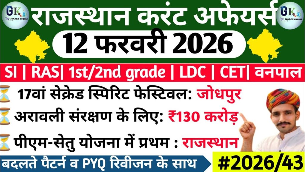 12 February Rajasthan Current Affairs 2026| RPSC, RSSB