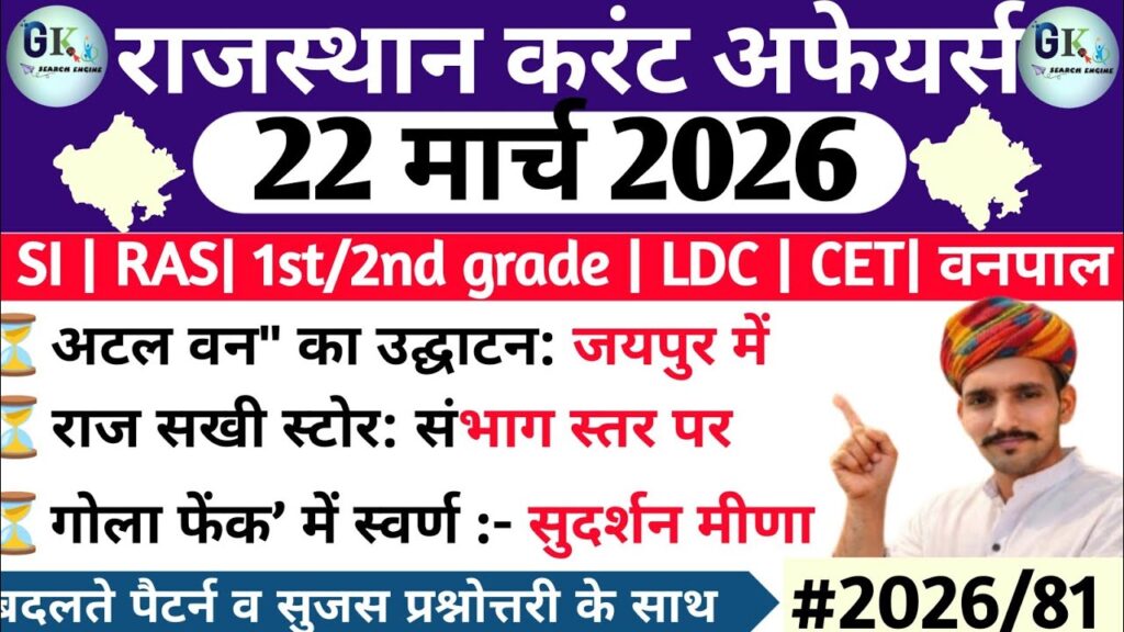 22 March Rajasthan Current Affairs 2026| RPSC, RSSB