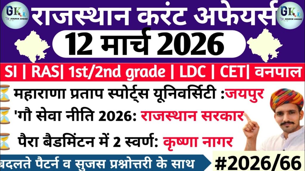 11 March Rajasthan Current Affairs 2026| RPSC, RSSB