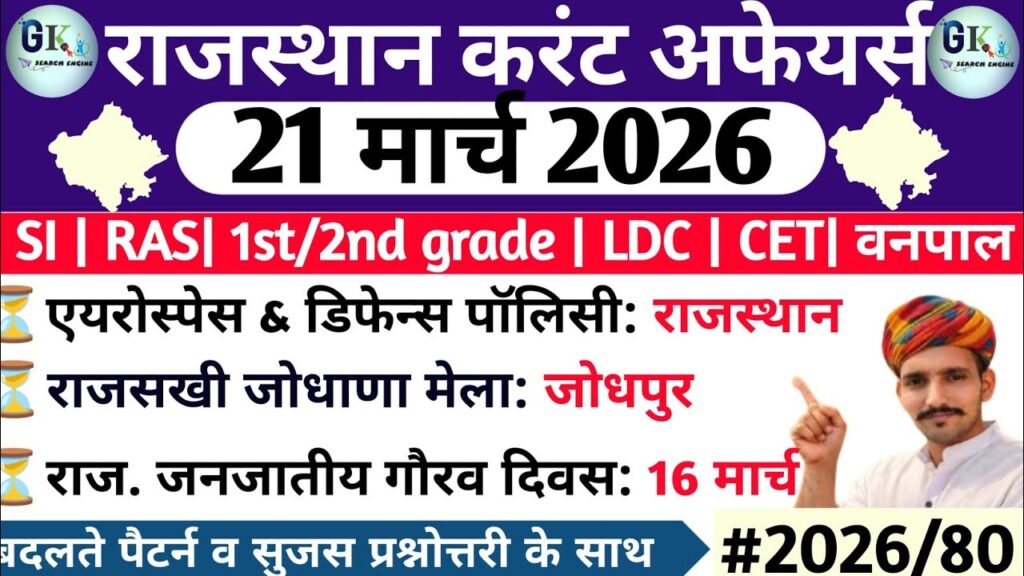 21 March Rajasthan Current Affairs 2026| RPSC, RSSB