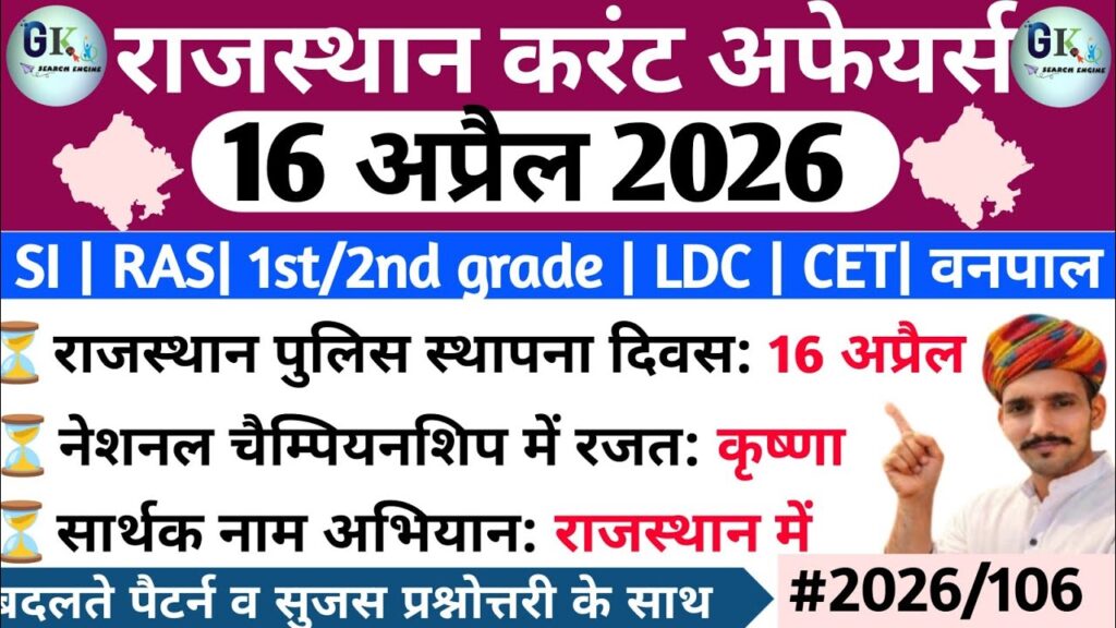16 April Rajasthan Current Affairs 2026| RPSC, RSSB