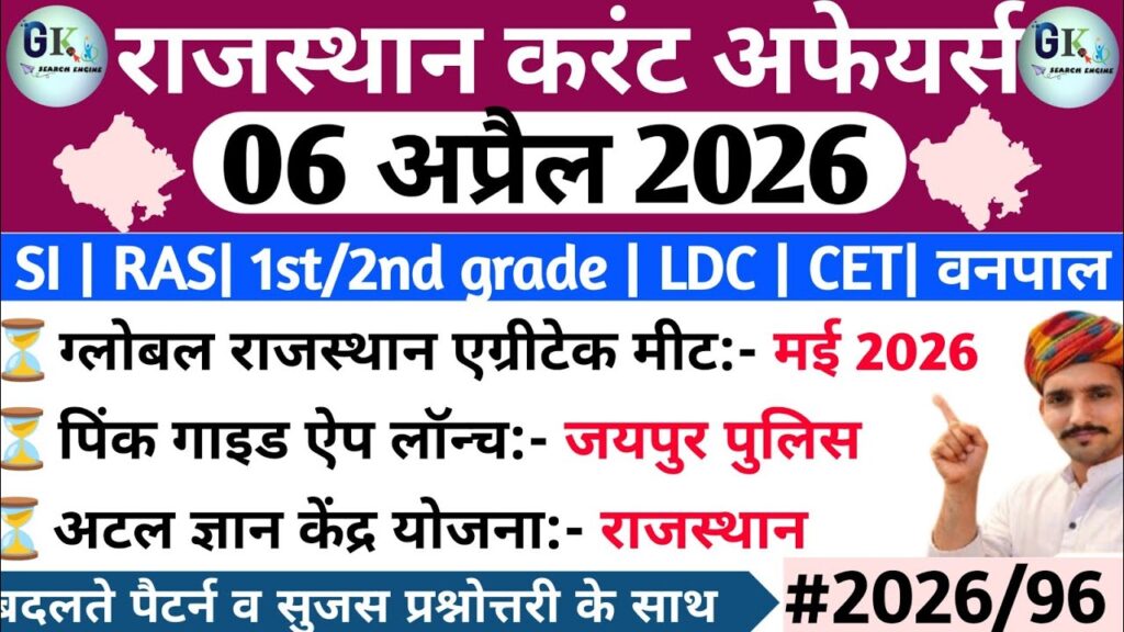 6 April Rajasthan Current Affairs 2026| RPSC, RSSB