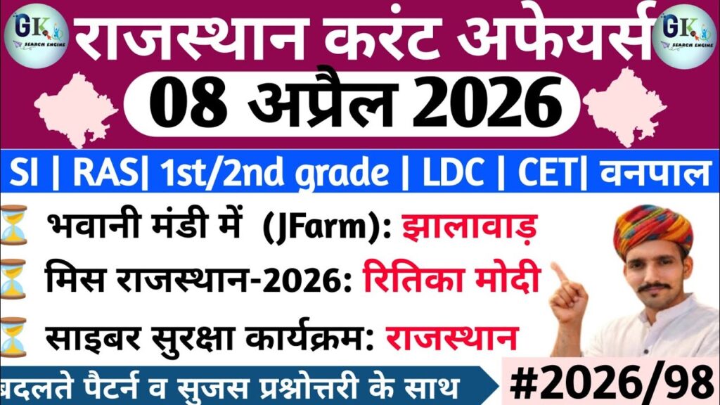 8 April Rajasthan Current Affairs 2026| RPSC, RSSB
