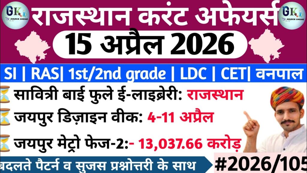 15 April Rajasthan Current Affairs 2026| RPSC, RSSB