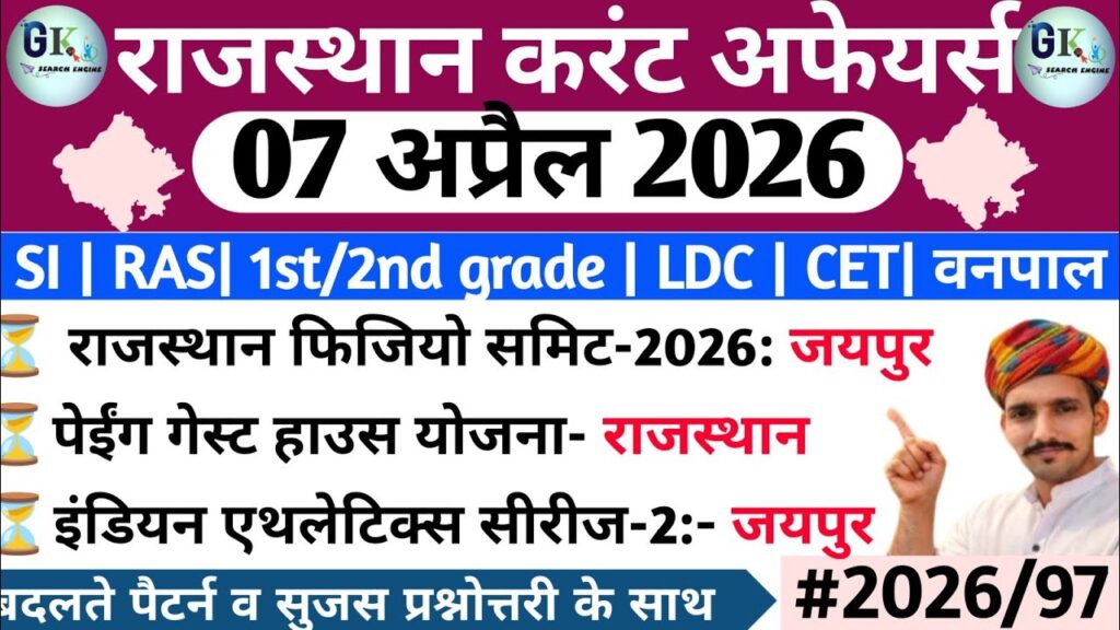 7 April Rajasthan Current Affairs 2026| RPSC, RSSB