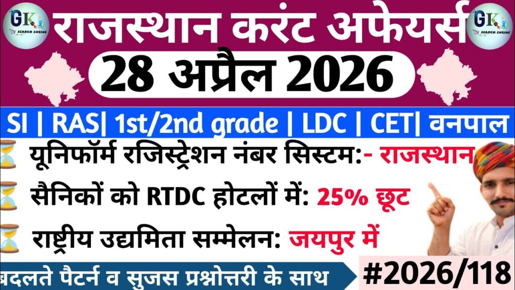 26 April Rajasthan Current Affairs 2026| RPSC, RSSB