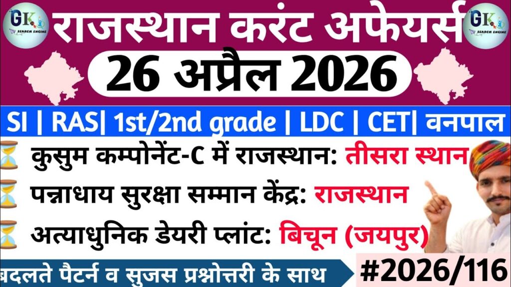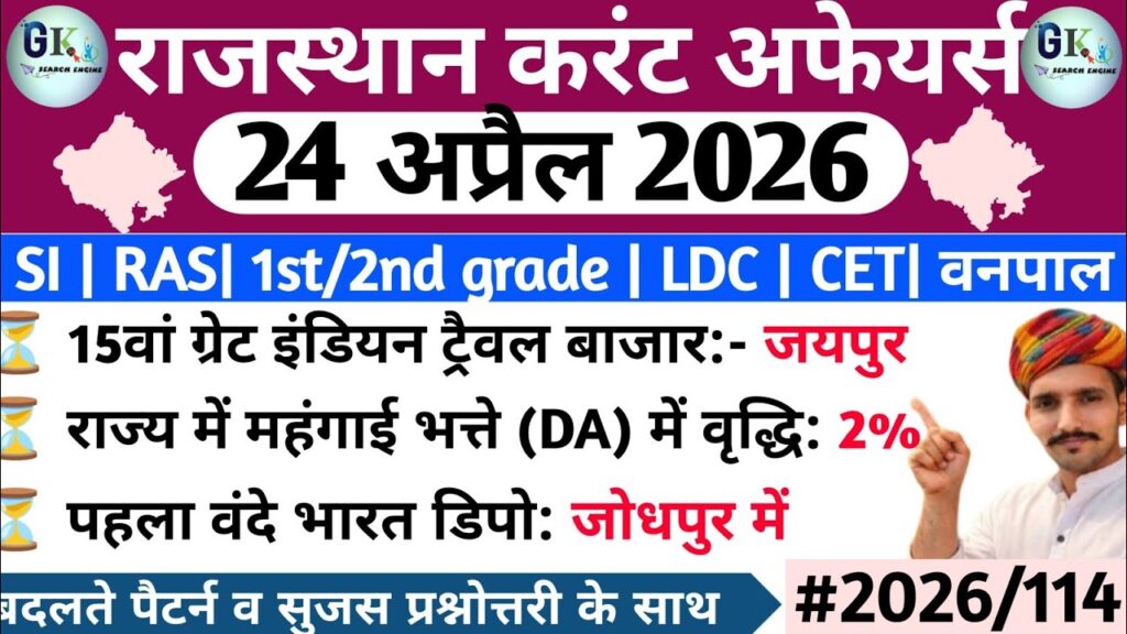 24 April Rajasthan Current Affairs 2026| RPSC, RSSB