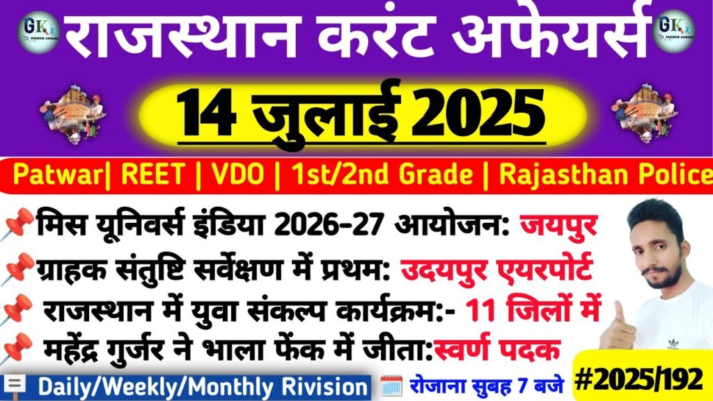 14 July Rajasthan Current Affairs 2025|RPSC, RAS Read More »