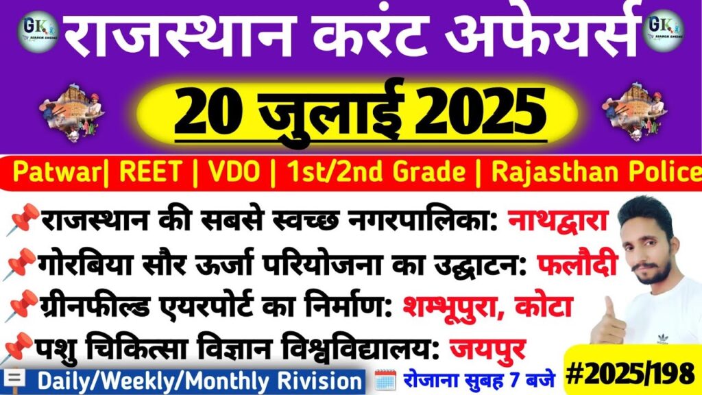 20 July Rajasthan Current Affairs 2025| RPSC, RAS Read More »