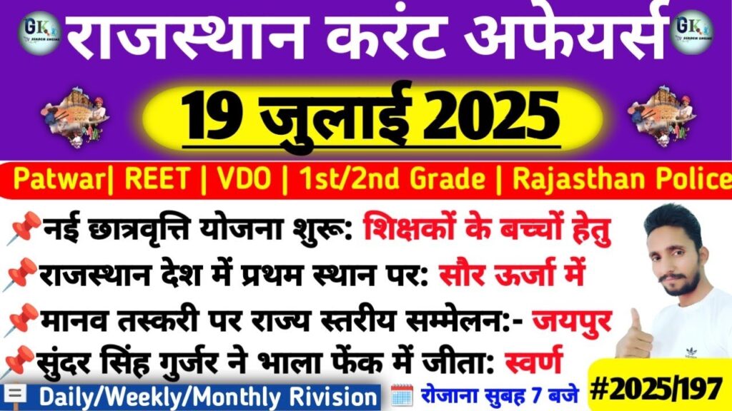 19 July Rajasthan Current Affairs 2025| RPSC, RAS Read More »