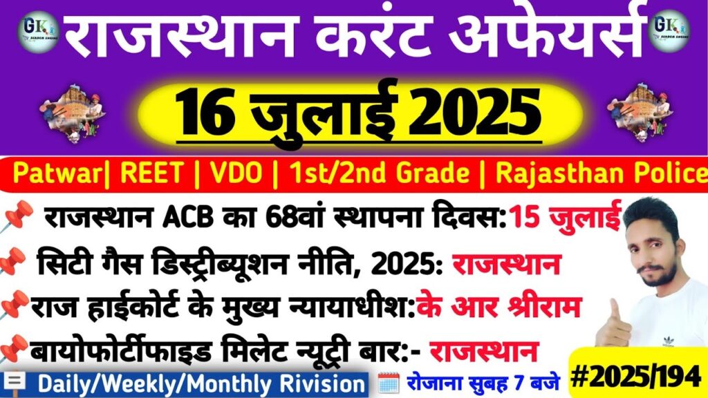 राजस्थान करंट अफेयर्स 16 जुलाई 2025 | टॉप 5 MCQs | प्रतियोगी परीक्षाओं के लिए उपयोगी