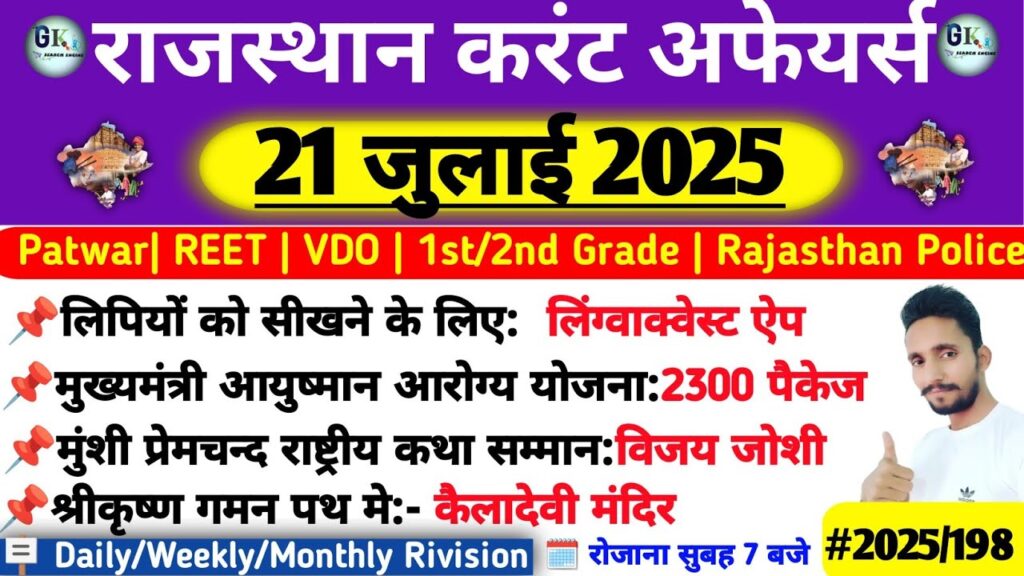 21 July Rajasthan Current Affairs 2025| RPSC, RAS