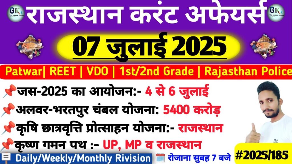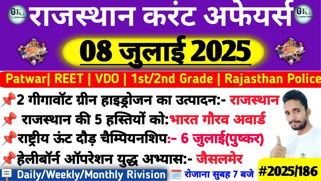 07 July Rajasthan Current Affairs 2025| RPSC, RAS Read More »