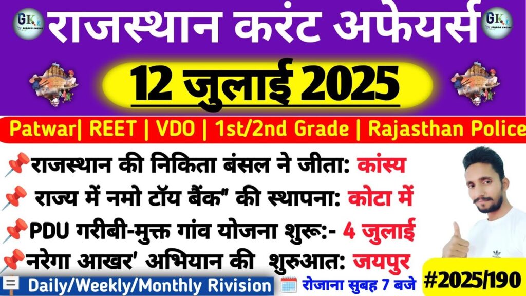 12 July Rajasthan Current Affairs 2025|RPSC, RAS