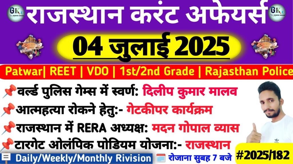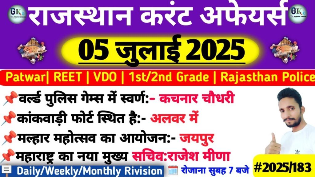 05 July Rajasthan Current Affairs 2025| RPSC, RAS Read More »