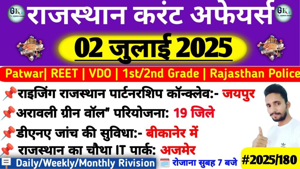 02 July Rajasthan Current Affairs 2025| RPSC, RAS Read More »