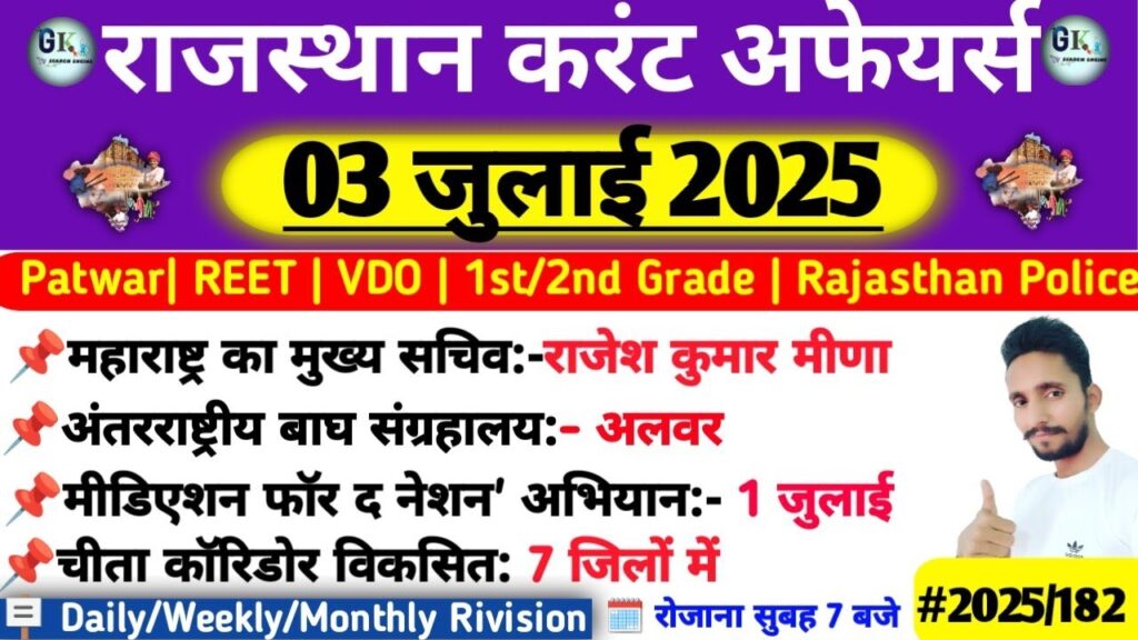 03 July Rajasthan Current Affairs 2025| RPSC, RAS