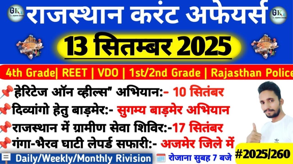 13 September Rajasthan Current Affairs 2025|RPSC, RSSB, SI Read More »