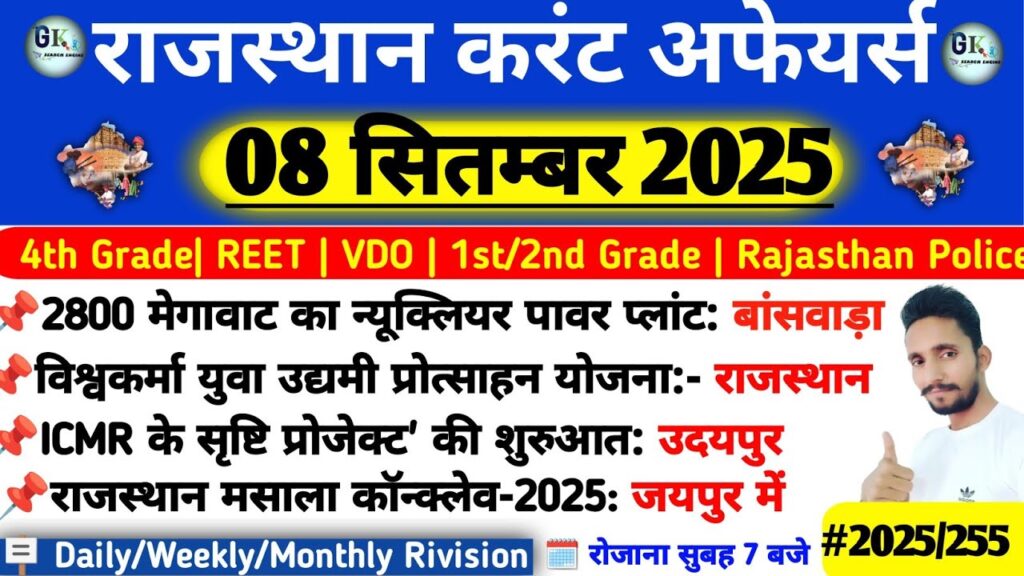 8 September Rajasthan Current Affairs 2025|RPSC, RSSB, SI Read More »