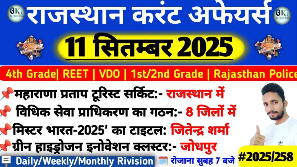 11 September Rajasthan Current Affairs 2025| RPSC, RSSB, SI Read More »