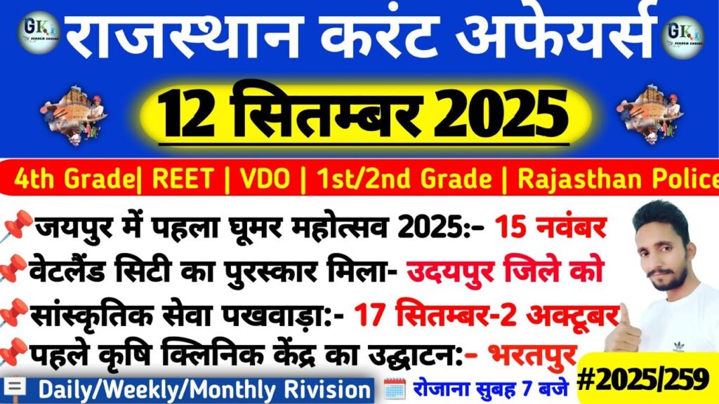 12 September Rajasthan Current Affairs 2025|RPSC, RSSB, SI Read More »