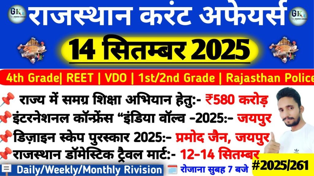 14 September Rajasthan Current Affairs 2025|RPSC, RSSB, SI Read More »