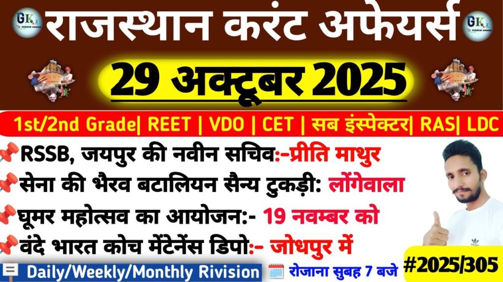 29 October Rajasthan Current Affairs 2025| RPSC, RSSB, SI Read More »