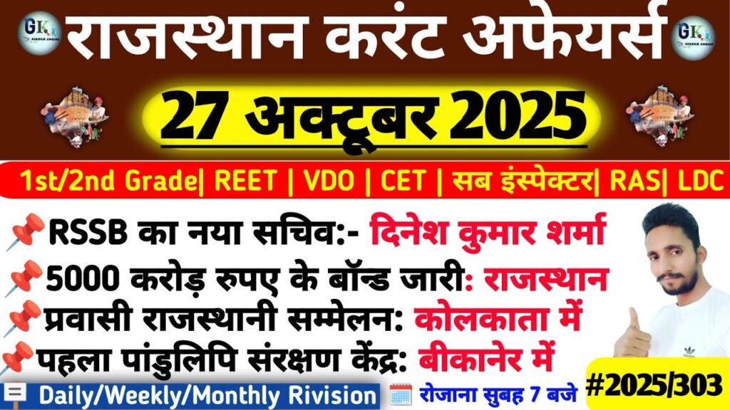 27 October Rajasthan Current Affairs 2025|RPSC, RSSB, SI Read More »