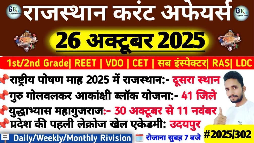26 October Rajasthan Current Affairs 2025| RPSC, RSSB, SI Read More »