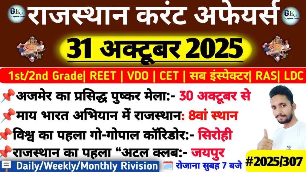 31 October Rajasthan Current Affairs 2025|RPSC, RSSB, SI