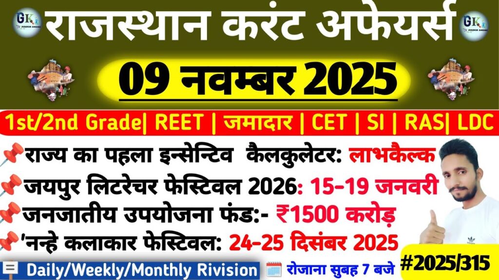 9 November Rajasthan Current Affairs 2025| RPSC, RSSB, SI Read More »