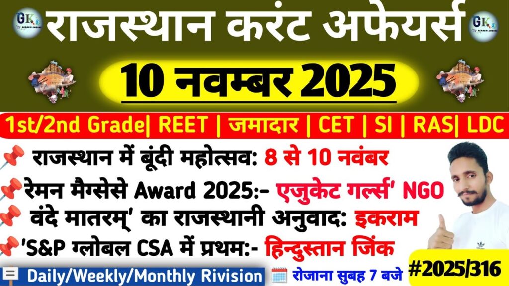 10 November Rajasthan Current Affairs 2025| RPSC, RSSB, SI