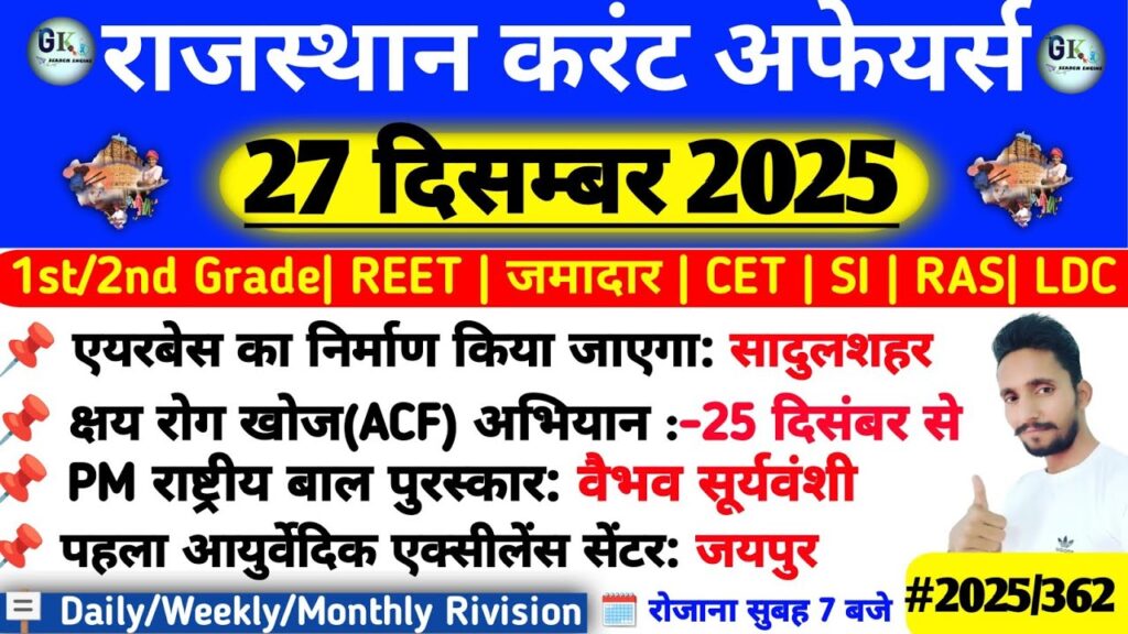 27 December Rajasthan Current Affairs 2025| RPSC, RSSB Read More »