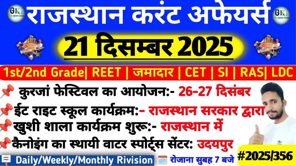 21 December Rajasthan Current Affairs 2025| RPSC, RSSB Read More »