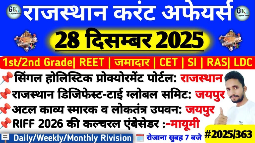28 December Rajasthan Current Affairs 2025| RPSC, RSSB Read More »