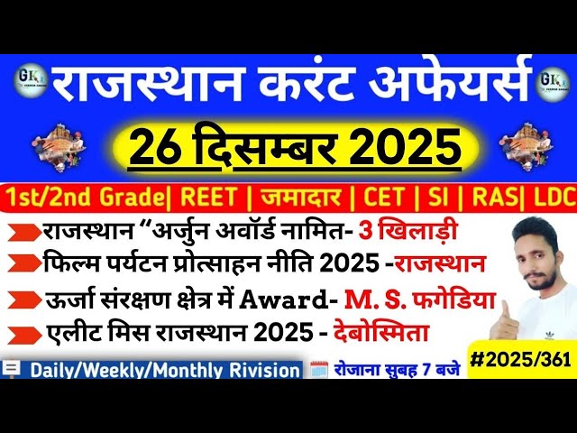 26 December Rajasthan Current Affairs 2025| RPSC, RSSB Read More »