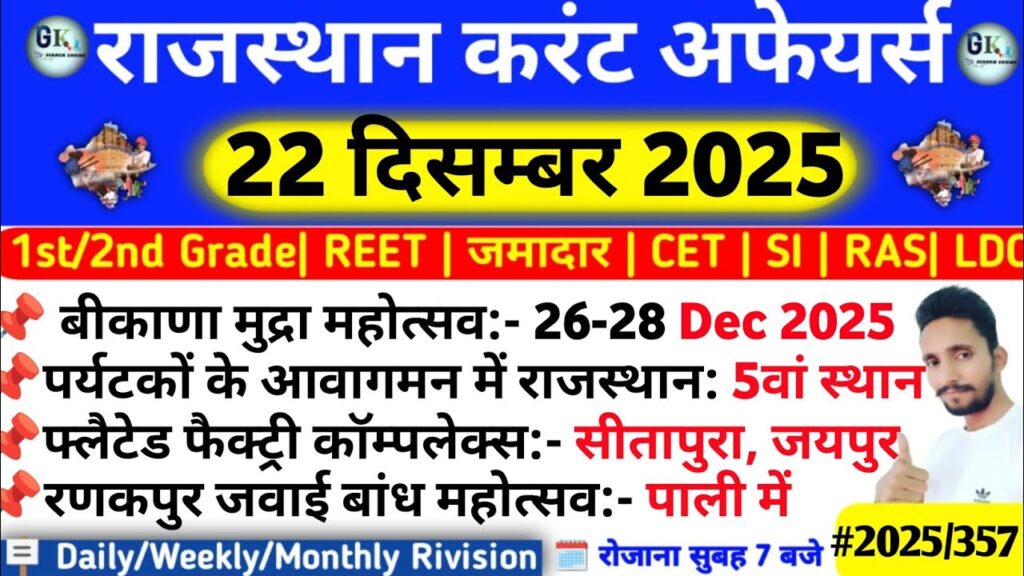 22 December Rajasthan Current Affairs 2025| RPSC, RSSB Read More »