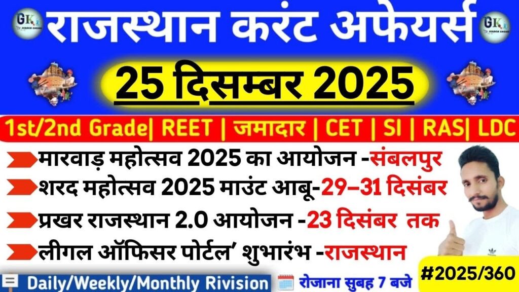 25 December Rajasthan Current Affairs 2025| RPSC, RSSB Read More »
