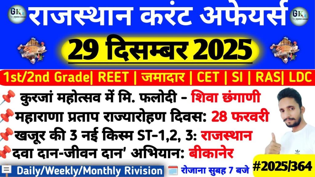 29 December Rajasthan Current Affairs 2025| RPSC, RSSB Read More »