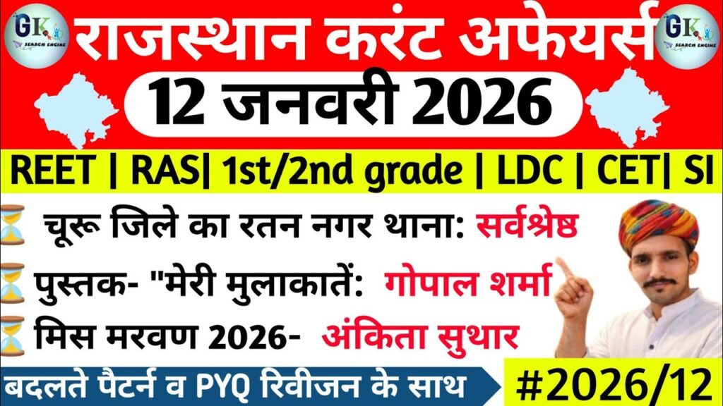 12 January Rajasthan Current Affairs 2026| RPSC, RSSB Read More »