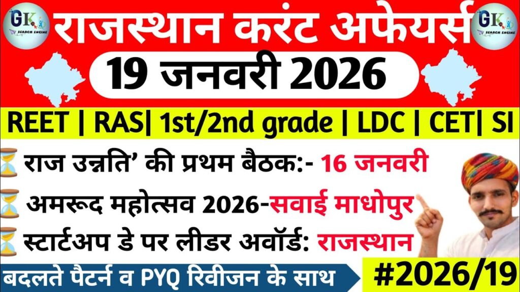 19 January Rajasthan Current Affairs 2026| RPSC, RSSB Read More »