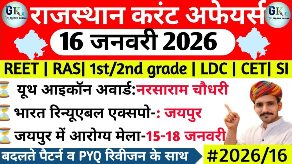 16 January Rajasthan Current Affairs 2026| RPSC, RSSB Read More »