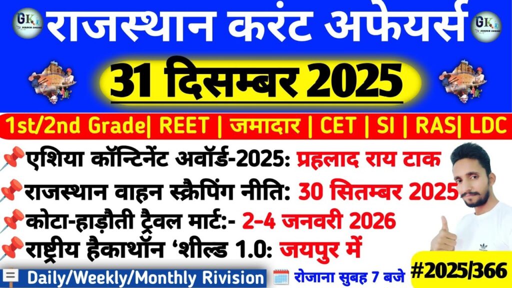 31 December Rajasthan Current Affairs 2025| RAS| RPSC Read More »